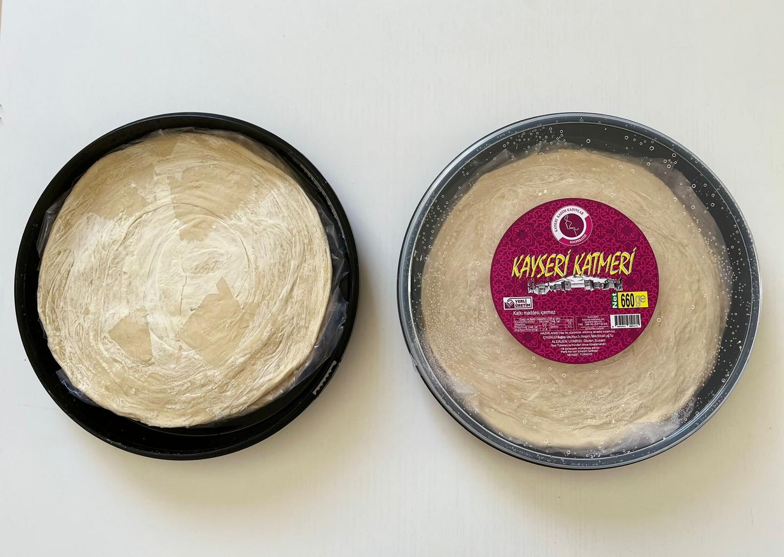 Kayseri Katmeri; buğday unu, su ve tuz karışımıyla hazırlanan hamurun içine tahinli harç koyularak açılan yufkaların birkaç kez katlanıp açılmasıyla üretilen hamur işidir. Kayseri Katmerinde tahinin baskın tadı hissedilir ve yufka katmanlarının tel tel olduğu gözlemlenir. Kayseri Katmerinin üretimi, özellikle yufkaların açılıp katlanması suretiyle katmanlı yapı oluşturulması bakımından ustalık becerisi gerektirir. Bu sebeple Kayseri Katmerinin, coğrafi sınır ile ün bağı bulunur.