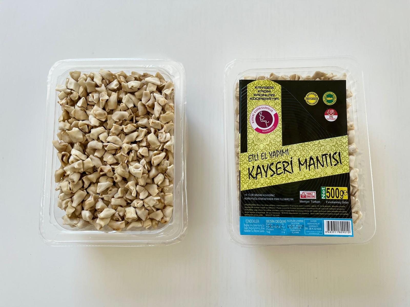 Kayseri Tepsi Mantısının geçmişi eskiye dayanır. Kayseri yemek kültürü içinde önemli bir yere sahiptir. Üretimi, coğrafi sınıra özgü koşullar bulundurur. Bu sebeplerle coğrafi sınır ile ün bağı bulunan Tepsi Mantısının tüm üretim aşamaları, belirtilen coğrafi sınırda gerçekleşir.3x3 cm lik Hamurun kenarları birleştirildiğinde, kıymalı harç mantının ortasında ve üstü açık şekilde kalmalıdır.Kendine Has dizilir. Dışardan başlayarak daireler şeklinde içeri doğru boşluk bırakmadan dizilir.Bu mantıyı farklı kılan lezzetinin yanı sıra bir sanat eseri gibi tek tek dizilmesidir.